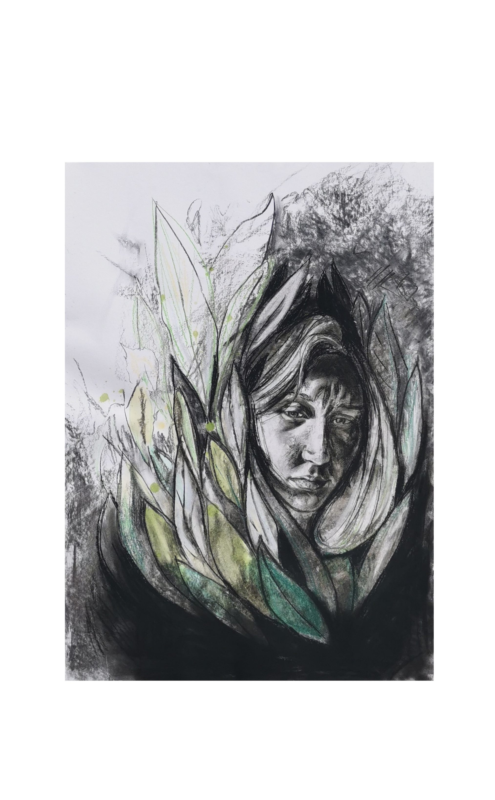 Kohle, Acryl, Buntstift